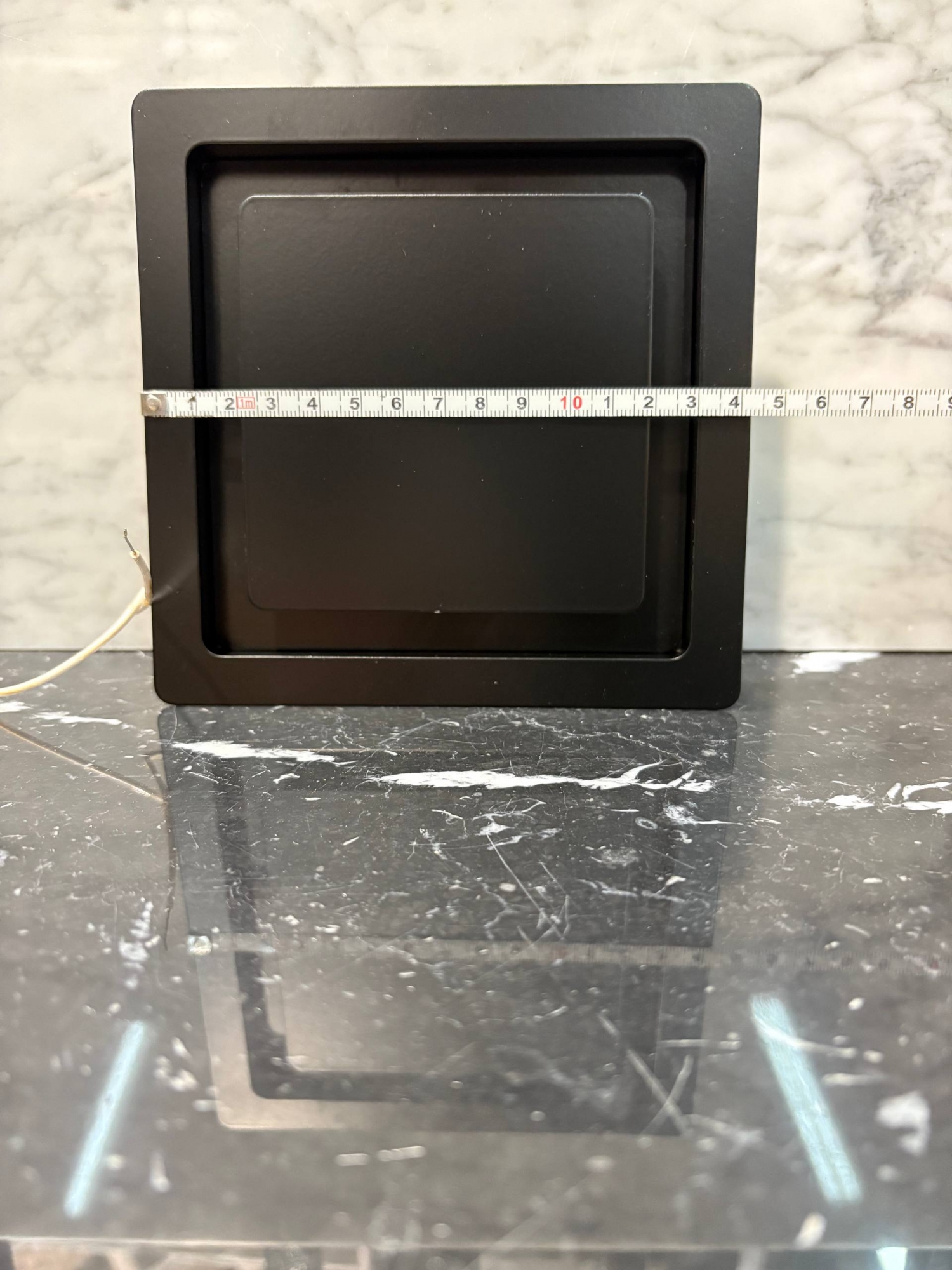 Рамка прикрепляется к стене или полотку при помощи саморезов или клея, а верхняя часть с глухой панелью фиксируется к рамке при помощи неодимовых магнитов.